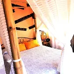 Der Innenraum ist mit einem Sofa möbliert und bietet zudem einen Blick auf den Pool. Das Badezimmer ist mit einer getrennten Toilette und einer Dusche ausgestattet und verfügt auch über einen Haartrockner und Handtücher.